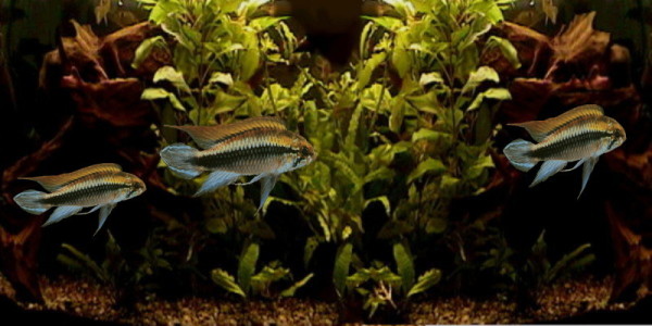 Apistogramma Gattung aus der Familie der Buntbarsche oder Cichlidae die in ihrem Vorkommen auf Südamerika beschränkt ist. Der Lebensraum sind die Flußoberläufe in sonnigen, schmalen Seitengewässern mit weichem Untergrund. Der Körper ist mehr oder weniger länglich und durchweg von geringer Größe. Sie zählen zu den Zwergcichliden, einer sich aus mehreren Gattungen zusammensetzenden Gruppe von Buntbarschen, die keine systematische Einheit darstellt. Gemeinsame Merkmale finden sich bei einem Teil der Arten in der Färbung. Eine solches sind z. B. die Gelbfärbung der Weibchen und die schwarze Kopfbinde. Sichere Zeichen für "echte" Apistogramma sind auf dem Gebiet des Verhaltens, besonders in der Fortpflanzung, zu suchen. Alle Arten sind ihrer Größe entsprechend und im Vergleich mit ihren größeren Verwandten relativ friedlich. Sie wühlen wenig, da sie in Höhlen brüten, auch schonen sie die Pflanzen. Die Brutpflege erfolgt in der von den nichtmaulbrütenden Cichliden bekannten Weise. Die Tiere benötigen nicht zu kleine Behälter mit vielen Höhlenverstecken und einer dichten Bepflanzung. Möglichst weiches Wasser ist bei einigen Arten notwendig. Die Eier werden in einem Gelege an Steinen, Wandungen, Höhlendecken oder auch an Pflanzen abgelegt. Während der Brutpflege sind die Tiere gegen Störung sehr empfindlich. Die schlüpfenden Jungfische werden bis zum Ende der Larvenzeit in schwer zugängliche Verstecke untergebracht. Sie erscheinen nach 10 - 12 Tagen unter der Obhut der Eltern oder eines der Elternteiles. Es werden von Anfang an feines Staubfutter, Mikrofutter, Artemia-Nauplien und Spezialtrockenfutter genommen. Ist das Becken genügend groß, können auch mehrere Paare nebeneinander pflegen. |