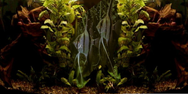 Pterophyllum (Blatt- oder Segelflosser) Südamerikanische Gattung aus der Familie Buntbarsche. Fast kreisförmiger Körper. Erscheint durch die hochragende, am Grunde beschuppte Rücken- und Afterflosse höher als lang. Seitlich stark zusammengedrückt. Verlängerte Strahlen der Bauchflossen bilden fadenförmige, relativ starre häufig gespaltene Anhänge. Sehr auffallende, dekorativ wirkende und daher beliebte Aqarienfische. Die Blattflosser sind über das tropische Südamerika weit verbreitet. Sie bewohnen stehende langsam fließende , deren Randbewuchs mit Röhricht Schutz bietet, aber auch in klippenreiche Gewässer. Fortpflanzung nach Art anderer, substratbrütender Cichliden, nur werden die Eier an Pflanzenblätter abgelegt und die Jungen nicht in Gruben untergebracht. Ihrer Größe entsprechend benötigen Blattflosser große und hohe Behälter. Temperatur sollte auf Dauer nicht 24 Grad unterschreiten, kann aber bis auf 30 Grad ansteigen. Es wird jede Art Lebendes- als auch Trockenfutter genommen. |
