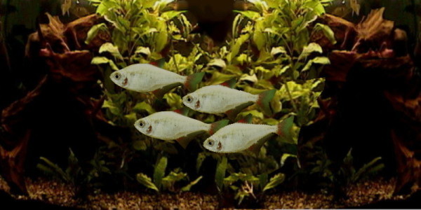 Hyphessobrycon (ein kleiner Brycon-Salmler) Eine Gattung kleiner Schwarmfische aus der Familie eigentlicher Salmler oder Characidae. Der Körper ist mehr oder weniger gestreckt, bei einigen Arten verhältnismäßig hoch. Die Stirnlinie oft leicht eingebuchtet, Kehle und Vorderbauch manchmal etwas vorgewölbt. Fettflosse vorhanden, Afterflosse lang. Seitenlinie unvollständig. Nahe verwandt mit der Gattung Hemigrammus, dadurch unterschieden, daß die Schwanzwurzel nicht beschuppt ist. Haltung und Zucht: Die Tiere lieben Gesellschaft und fühlen sich in einem Aquarium mit reichlich bepflanzten Rändern bei freiem Mittelraum besonders wohl. Sie gehören zu den Freilaichern; die Zucht kann leicht, bei einigen Arten aber auch schwierig sein. Das Ablaichen erfolgt nach lebhaftem Treiben. Soweit die Zucht Schwierigkeiten macht, beruhen diese auf spezialisierten Ansprüchen der betreffenden Arten an die Zusammensetzung des Wassers. Die Aufzucht der Jungfische ist nicht schwierig. |