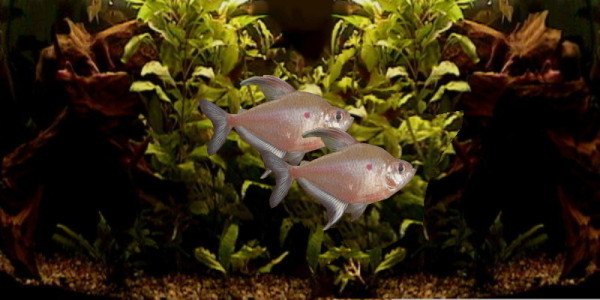 Hyphessobrycon erythrostigima (Kirschflecksalmler) Es ist möglich daß es eine weitere Art unter der Bezeichnung Hyphessobrycon rubrostigma Im Handel gibt. Gestalt wie in der Gattungsbeschreibung angegeben. Es befindet sich auf der Schulter des grünlichbraunem, rot überhauchten Körper, der stellenweise einen schönen Silberglanz zeigt, ein roter, perlmuttfarben umrandeter Fleck. Die Farben der Kirschflecksalmler - Männchen sind intensiver. Bei ihnen sind die ersten Flossenstrahlen der Afterflosse stark verlängert und bogenförmig ausgezogen. Die Afterflosse des Weibchens ist durchsichtig und farblos. Die Weibchen bleiben etwas kleiner. Bei ihnen wird ein Fleck am Bauch sichtbar, der goldfarben schimmert. Verbreitung: Kolumbien. Der Kirschflecksalmler ist ein sehr schöner und friedlicher Schwarmfisch. Er sollte in einem Schwarm von mindestens 10 Tieren gehalten werden. Für ein gutes Gedeihen brauchen Kirschflecksalmler optimale Wasserbedingungen und eine gute Wasserqualität. In einem Aquarium mit weichem Wasser, dem Torfextrakte und Huminstoffe zugesetzt werden oder das eine zusätzliche Filterung über Torf verfügt, fühlen sich Kirschflecksalmler wohl. Durch diese Zusätze erhält das Wasser eine bernsteinartige bis bräunliche Färbung, die ihre Farben vorteilhaft zur Geltung bringt. Die Tiere lieben Gesellschaft und fühlen sich in einem Aquarium mit reichlich bepflanzten Rändern bei freiem Mittelraum besonders wohl. Kirschflecksalmler sind Allesfresser. |
