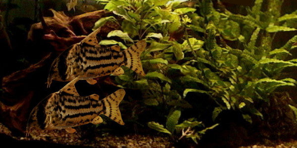 Gattung Corydoras - Panzerwelse Charakteristisch ist für diese Gattung sind die fehlenden Knochenschilder auf der Schnauze. Bekannt sind über einhundert Arten, von denen eine Vielzahl bereits in Aquarien gepflegt wurden. Körper gedrungen, meist relativ hoch, seitlich mehr oder weniger abgeflacht. Rückenlinie immer wesentlich stärker ausgebogen als die Bauchlinie. Die Panzerwelse bewohnen langsamfließende, seltener fließende Gewässer. In kleinen Trupps suchen sie im Flachwasser, auf Schlamm- und Sandbänken, nach Futter. Im Aquarium erweisen sich fast alle Arten als hart und genügsam. Sie lassen sich gut im Gesellschaftsaquarium mit reichlichen Pflanzenwuchs und Versteckmöglichkeiten unterbringen. Durch ihre bodengebundene Lebensweise nehmen sie in der Regel das Futter vom Bodengrund auf. Sie werden aus diesem Grund häufig als nützliche Vertilger von Futterresten betrachtet. Bei Futtermangel können Panzerwelse durch buddeln im Bodengrund starke Wassertrübungen verursachen. Neben Lebendfutter aller Art, besonders aber Wurmfutter, wird von fast allen Arten auch Trockenfutter angenommen. Die Temperaturansprüche sind je nach Herkunft verschieden. Temperaturen von 25 Grad eignen sich für die Pflege und auch Zucht der meisten Arten. Grundsätzlich sollten Panzerwelse in klarem, sauerstoffreichen, bakterienarmen Wasser gehältert und gezüchtet werden. Der pH-Wert kann um den Neutralpunkt und die Härte zumindest in der Zucht zwischen 5 - 10° dH liegen. Das Aquarium sollte nur eine geringe Höhe, aber großflächig sein und 100 - 200 Liter fassen. Günstig ist ein dunkler Bodengrund der nicht zu scharfkantig ist. Im Aufzuchtbecken ohne Bodengrund sollte bei dem regelmäßigen Wasserwechsel auch die Bodenscheibe gereinigt werden. Die Vermehrung in der Gefangenschaft ist bei einigen Arten nicht schwierig. Andere dagegen erfordern große Aufmerksamkeit und Erfahrung. Einige konnten noch nicht nachgezüchtet werden. Die meisten Arten haben ausgesprochene Laichzeiten, meist zwei im Jahr (Dezember bis März und August - November). Die Männchen sind meist größer und kräftiger. Die Rückenflosse ist beim Männchen ausgezogener. Das Paar sucht man am besten aus einer großen Schar optimal aufgezogener Jungfische aus. Meist benötigen die Partner erst einige Tage zur Eingewöhnung. In dieser Zeit ist ausreichend mit eiweißreicher Nahrung zu füttern. Alle Exkremente sollten täglich abgesaugt werden, das dabei entfernte Wasser ist durch Frischwasser zu ersetzen. Zu Beginn des Liebesspiels betupft das Männchen das ruheloser werdende Weibchen. In kurzen Abständen werden an verschiedenen Stellen Steine, Pflanzen und Scheiben geputzt. Bei der Paarung klemmt das Männchen mit seiner Brustflosse die Barteln des Weibchen an seinen Körper und drückt diese so gegen seine Bauchseite. Gleichseitig stößt es die Samenfäden aus. Unmittelbar danach treten beim Weibchen 3 -5 Eier und werden in einer von den beiden Bauchflossen gebildeten Tasche aufgefangen. Das Männchen läßt jetzt das Weibchen los, und dieses schwimmt mit den Eiern durch die Spermawolke zu einer bestimmten Stelle, putzt diese kräftig kurz und heftet die Eier an. Das Männchen beginnt sofort das Weibchen erneut anzubalzen. Das Weibchen kann bei C. eques bis zu 800 Eier ablegen. C. hastatus bringt es nur bis zu 50 Eier. Am Ende der Laichperiode, die bei guter Fütterung bis 15 Laichgänge im Abstand von 4 - 7 Tage umfassen kann, werden die Gelege kleiner. Während des Laichens halten die Tiere öfters Freßpause und sind deshalb zu füttern, bei Futtermangel werden die abgelegten Eier gefressen. Aus diesem Grund sollten die Elterntiere nach dem Laichgeschäft entfernt werden. Die ursprünglich hellen, nahezu 2 mm großen Eier werden während der Entwicklung dunkler. Die Jungfische schlüpfen bei 22° durchschnittlich nach 5 - 8 Tagen und werden am besten nach einem Aufzuchtsbecken ohne Bodengrund überführt. Bei guter Fütterung, Mikrofutter, Grindalwürmchen, Nauplin, später Tubifex, Enchyträen und Daphnien, ist das Wachstum schnell. |