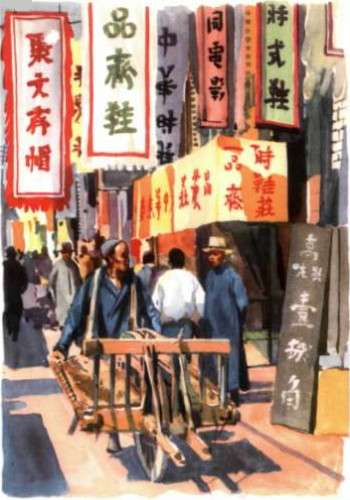 Chinesenstadt in Port Darwin Das erste, was uns in Port Darwin empfing, war das Chinesenviertel. Das war ein Schnattern und Feilschen! Aus den Hauseingängen und Fenstern kläfften die Hunde, überall hingen lange bunte Plakate mit chinesischen Schriftzeichen. Vor jedem Verkaufsstand blieben wir stehen. Die Menschen hatten freundliche Gesichter, sie lächelten und winkten uns zu, wenn wir die Auslagen der Geschäfte betrachteten. |