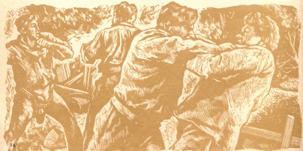 Als wir uns - nach Stunden scharfen Reitens - der Station nähern, kommt uns zuerst schwacher, dann immer stärkerer Brandgeruch entgegen. Wir treiben die Pferde an und jagen durch den trockenen Busch, so schnell wir können. Klaus ist blaß und sagt kein Wort. Schon manche Station ist bei großen Buschfeuern niedergebrannt. Der Busch brennt Gott sei Dank - da liegen die Häuser und Schuppen von Sunny Lake unversehrt vor uns! Aber wir treffen keinen Menschen, anscheinend sind sie alle draußen, um die Schafe in Sicherheit zu bringen. In mörderischem Ritt jagen wir den Rauchschwaden entgegen. Und da sehen wir auch schon die Feuerwand vor uns. Schafe kommen uns entgegen - erst einzelne Tiere, ängstlich blökend, und dann in dichten Scharen, rennend und sich gegenseitig stoßend. Dahinter - hin und her jagend - einige Reiter mit rauchgeschwärzten Gesichtern. Und plötzlich sehen wir auch Klaus' Vater und die anderen Männer. Sie haben einen Lastwagen voll mit Wasserkanistern bei sich. |