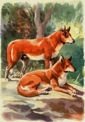 Dingos Dingos, die etwa schäferhundgroßen australischen Wildhunde, stammen von Haushunden ab, die im Laufe der Zeit verwilderten. Sie werden von den Schafzüchtern erbittert verfolgt, weil sie ihre Herden angreifen. |