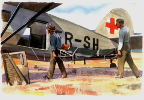 Der Doktor kommt mit dem Flugzeug Australien ist außerordentlich dünn besiedelt (Bevölkerung: 7,6 Millionen; Fläche: 7,7 Millionen Quadratkilometer). Während die Masse der Bevölkerung in den Städten der Ost- und Südostküste konzentriert ist, verteilt sich der Rest über das ganze gewaltige Gebiet. Da ist die ärztliche Betreuung der verstreutwohnenden Landbevölkerung schon ein Problem. |