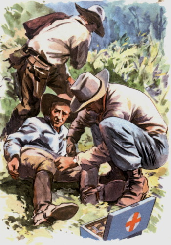 Erste Hilfe im Busch Ganz Australien ist mit einem gutorganisierten Netz von Sanitätsstationen überzogen. Viele Sanitätsposten sind mit Flugzeugen ausgestattet, um auch einzelnen Farmen, die oft Hunderte von Kilometern von der nächsten größeren Ortschaft entfernt sind, ärztliche Hilfe bringen zu können. |