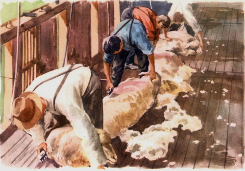 Harte Arbeit: Schafschur Der wichtigste Wirtschaftszweig Australiens ist die Schafzucht. Australien ist das bedeutendste Wolland der Erde. 1948 wurden hier 4 717 000 Doppelzentner Wolle erzeugt, das waren etwa 27% der Weltproduktion. Argentinien, das an zweiter Stelle folgt, erreichte nur 15%. |