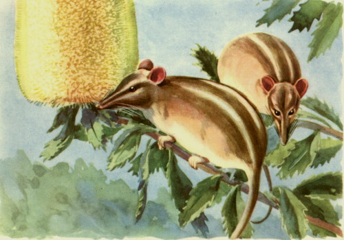 Honigbeutler Der außerordentlich seltene Rüsselbeutler gehört zur Familie der Kletterbeutler. Soweit bekannt, wurde er noch niemals lebend nach Europa gebracht. Der kleine Honig= und Insektenfresser ist im allgemeinen im Südwesten Australiens zu Hause, kommt aber auch gelegentlich weiter nördlich vor. |
