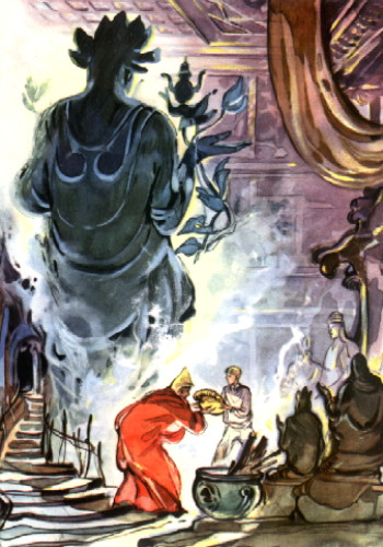Hwaschan, Sianfu, Szetschuan Zu Ehren des Abtes, der hier zum erstenmal aus tiefer Versenkung erwacht, macht die Maschine eine Runde über dem 2200 Meter hohen Hwaschan, den dritten heiligen Berg der Buddhisten in China. Nun sind sie schon in der Provinz Schensi ("westlich vom Paß")! Wenige Minuten später heißt es Festhalten! Zwischenlandung in Sianfu! Daliegt sie schon unter ihnen, die Hauptstadt von Schensi, mitten in der großen Lößebene am Weifluß. "Sie war die Hauptstadt des ganzen Reiches von 200 vor bis 600 nach Christus." "Als die Kimbern und Teutonen gegen das Römische Reich vordrangen und die Hunnen in Europa einbrachen..." denkt Tom. Mauern und Türme von Sianfu sind gewaltiger als die von Peking. Aus der Höhe gesehen hat die ganze Stadt eine lößgelbe Farbe. - Auf dem Flugplatz wird die Maschine getankt. Während eines einfachen Reismahles im Flugplatzgebäude erzählt Dorrtsche, daß die Beamten des Kaisers früher .. . Tage gebrauchten, um mit einem Pekingkarren von Peking nach Sianfu zu reisen. Der Flug hat nur gut drei Stunden gedauert. In diesem Jahr soll auch die große Ostwestbahn fertiggestellt werden, die Sian mit Lantschau verbindet. |