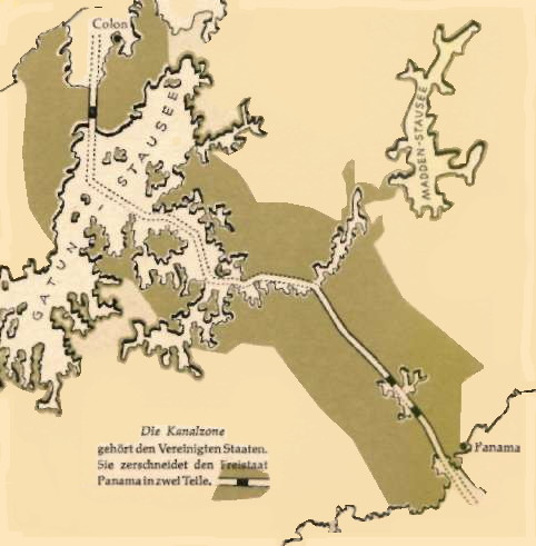 Panamakanal 1881 begann eine französische Gesellschaft unter der Führung von Ferdinand Lesseps den Bau des Kanals, der aber 1889 als gescheitert betrachtet werden mußte. Die Gesellschaft brach unter großen Schulden zusammen. 1902 kauften die Vereinigten Staaten die Rechte der französischen Gesellschaft. Mit Kolumbien kam keine Einigung zustande. Erst der neugegründete Staat Panama räumte ihnen die Kanalzone ein. Der endgültige Bau konnte beginnen. |