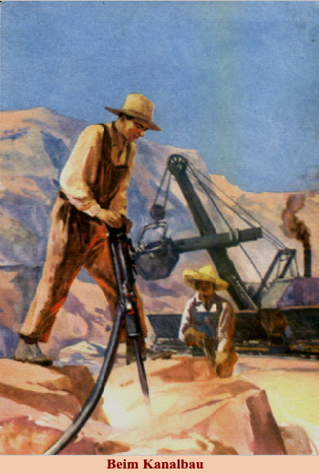 Beim Kanalbau Ungeheure Verluste an Menschen und Material erlitten die Erbauer des Panamakanals. Moskitos ließen ungezählte Arbeiter sterben, und unter dem Einfluß des ungünstigen Klimas gingen weitere zugrunde. Erst als die ausgedehnten Sümpfe trockengelegt waren, konnte man mit dem Bau des Kanals fortfahren. Ganze Hügel mußten abgetragen werden, und wenn das Gestein nachrutschte, bevor man es absteifen konnte, war die Arbeit von Wochen und Monaten vergeblich. |