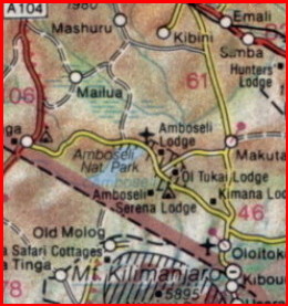Ausschnit aus einer Landkarte für den Amboseli Nationalpark in Kenia |