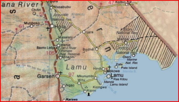 Ausschnit aus einer Landkarte für das Boni National Reservat in Kenia |
