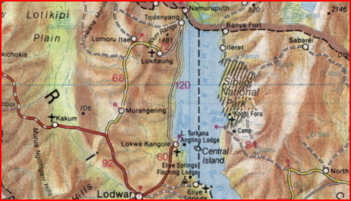 Ausschnit aus einer Landkarte für das Central Island National Reservat in Kenia |