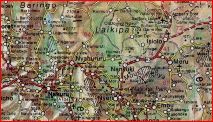 Das Laikipia National Reserve umschließt das Laikipia Plateau mit 165 km2. Das Laikipia Plateau liegt 21 km von Nyahururu ( Thomson´s Falls ) entfernt. Nyahururu ist mit 2360 Meter über den Meeresspiegel gelegen, der höchste Ort Kenias. Das Laikipia National Reserve wird vom Ewaso Nyiro Fluss und vom Ewaso Narok Fluss abgegrenzt. Im Laikipiagebiet leben die Maasai und die Samburu. Nyahururu ist mit 2360 Meter über den Meeresspiegel gelegen, der höchste Ort Kenias. Das Laikipia National Reserve wird vom Ewaso Nyiro Fluss und vom Ewaso Narok Fluss abgegrenzt. Im Laikipiagebiet leben die Maasai und die Samburu. |