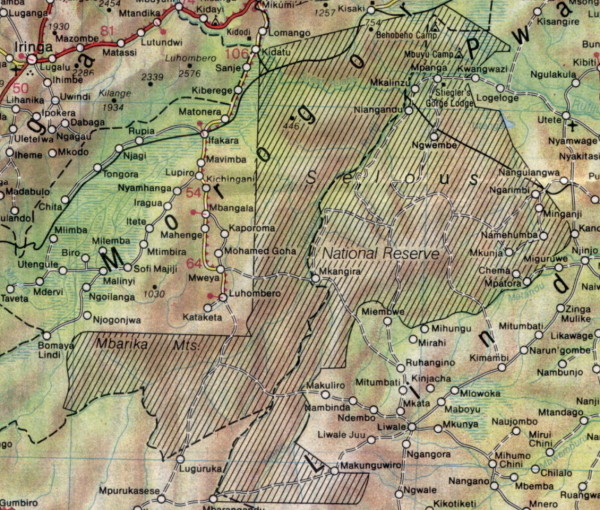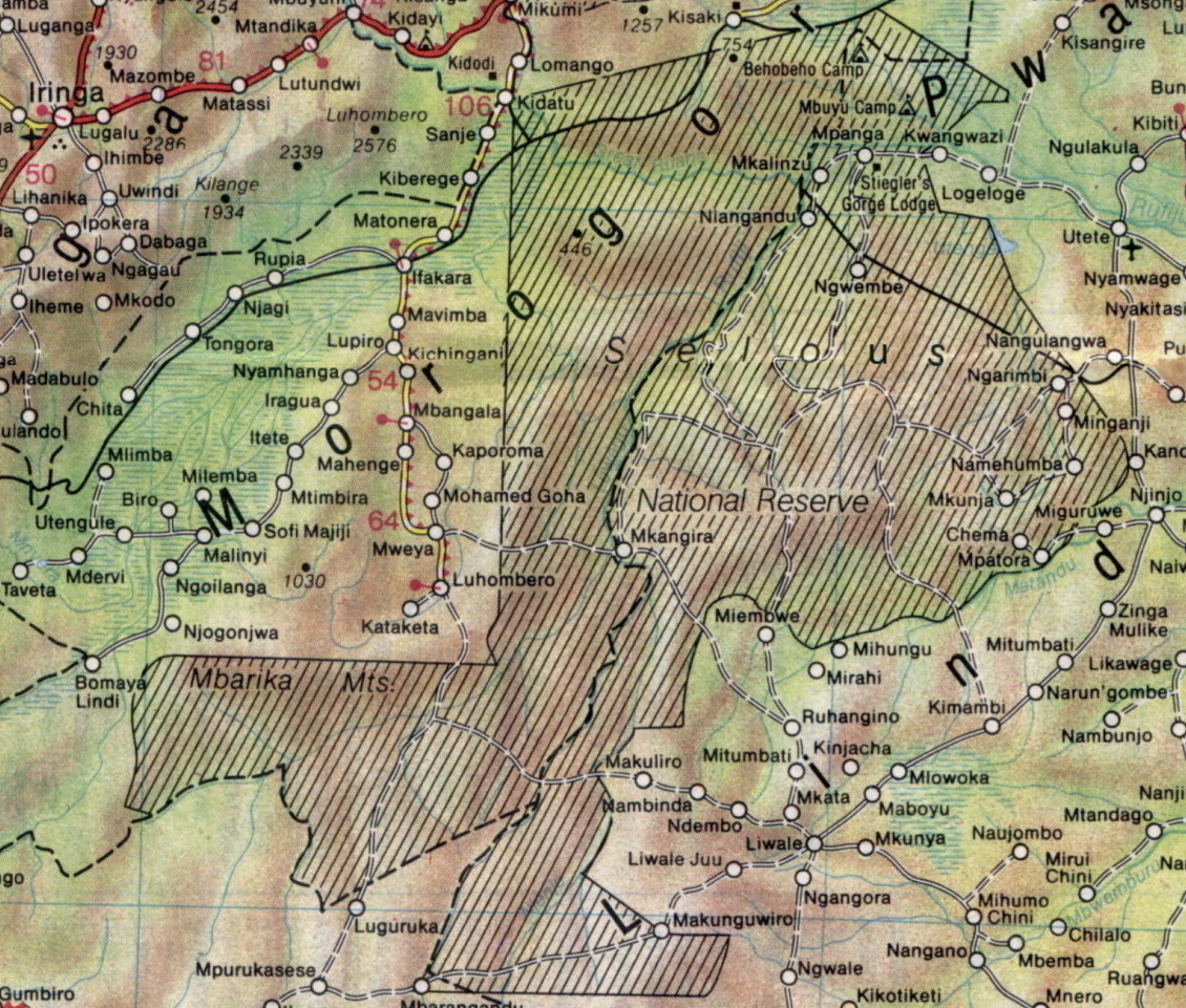 Ausschnit aus einer Landkarte für Selous-Game-Reserve in Tansania |