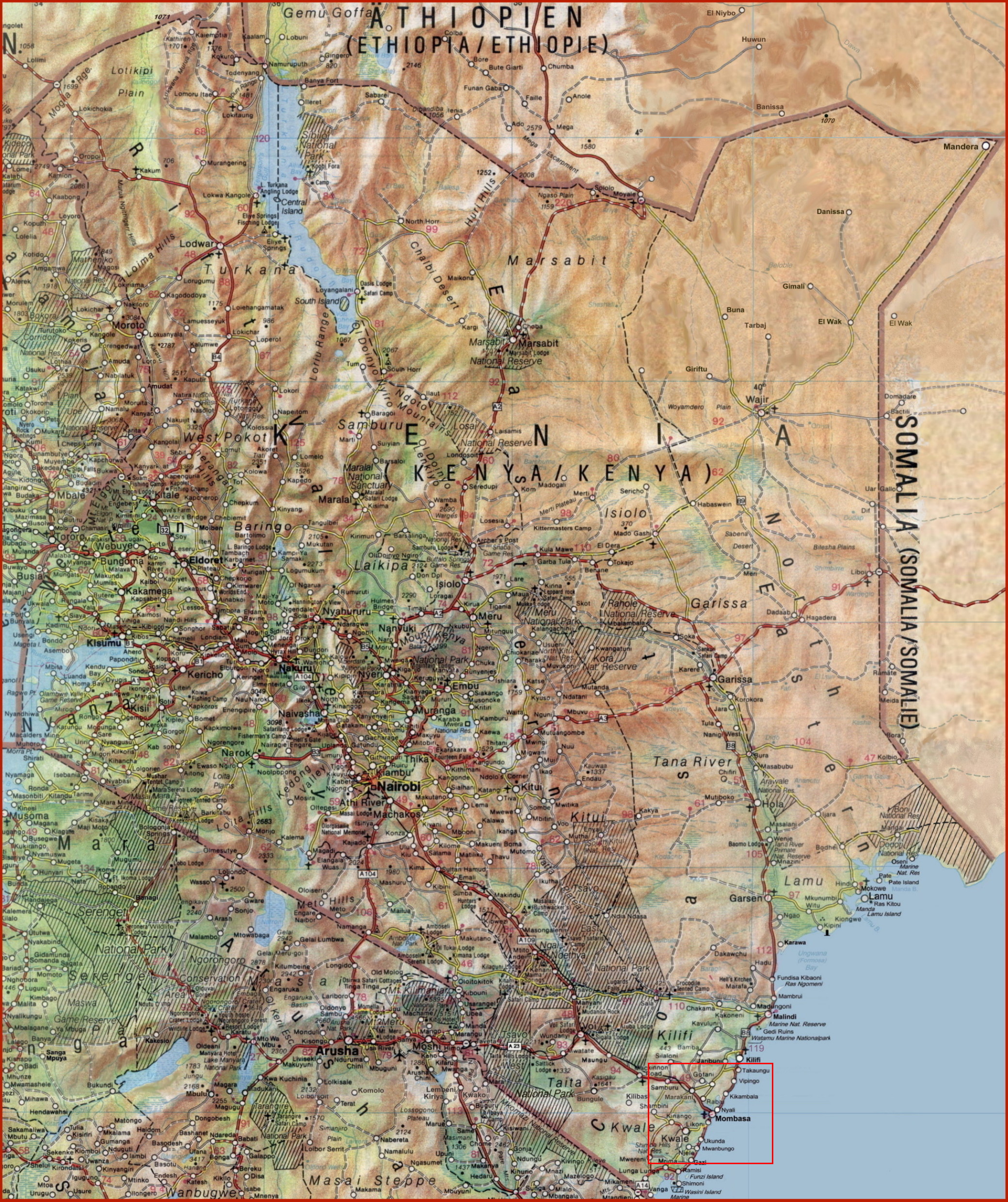 Ausschnit aus einer Landkarte für das Shimba Hills National Reservat in Kenia |