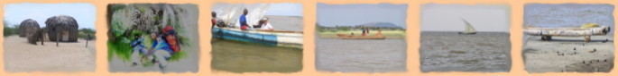 In Kalokol war es so heiß, daß ich um meinen Fotoapparat bangen mußte, denn den konnte man kaum noch anfassen. Ein Thermometer das ich mir aus Deutschland mitgebracht hatte, zeigte 38 Grad C im Schatten an. In dem Ort wurde mit norwegischer Hilfe in den achtziger Jahren eine Fischfabrik gebaut. Sie wurde wegen Elektrizitätsmangel wieder stillgelegt. Der Bau hatte viele Turkana veranlaßt dort seßhaft zu werden. Das hat dazu geführt daß das Land, durch intensives Abholzen der Bäume für Brennholz, heute fast baumlos ist. Einen Inselbesuch von Central Island, der mir in Kalokol angeboten wurde, wollte ich nicht machen, denn als Einzelperson ist er mit 100 Dollar ziemlich teuer. Es war ohnehin für die geplante Tour am 10.06.05 ein Besuch dieser Insel von der anderen Seite des Turkanasees vorgesehen. Wir nahmen noch einen Fischer aus Kalokol mit und erreichten den Ferguson`s. Gulf nach einem anstrengenden Fußmarsch. Der Ferguson`s. Gulf war durch viele Niederschläge, es herrschte ja Regenzeit, beachtlich angeschwollen. Wir nahmen deshalb ein Boot das erst nach der Rückfahrt bezahlt werden sollte. Eine kleine Segelpartie war noch mit inbegriffen. Das Boot hatte alles mögliche geladen, so daß es keine vergnügliche Segelpartie war. Am Ufer des Turkanasees steht eine Lodge die geschlossen ist. Lange ist es her, daß hier Touristen zum Fischen kamen. Sie kamen meistens mit dem Flugzeug. |