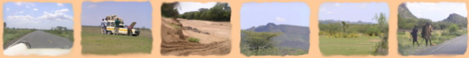 Die Schreibweise von Lokichoggio habe ich von einem Wegweiser vor dem Ort entnommen. Lokichoggio ist von Lodwar ca. 240 Km entfernt und liegt ca. 40 km vor der sudanesischen Grenze. Die Strecke ist bis auf einige frische Schäden an Flußübergängen bestens ausgebaut. Im Sudan gibt es Ölvorkommen, die Begehrlichkeit erwecken und den Bürgerkrieg in Gang hält. In Lokichoggio gibt es viele Hilfsorganisationen die angeblich nur humanitäre Zwecke verfolgen und sich dabei gegenseitig auf die Füße treten. Während der Fahrt bietet sich das bisher gewohnte Landschaftsbild. |