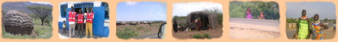 Die Fahrt wird durch viele Pannen immer wieder unterbrochen. Bei einer scharfen Bremsung hatte sich ein Schalthebel, der keinen Knauf mehr hatte, in den Oberschenkel des Fahrers gebohrt. Mein ganzes Verbandsmaterial mußte ich einsetzen, um die Wunde zu versorgen. Bei einem Zwischenstop in Kakuma sollten sich Helfer vom Roten Kreuz die Wunde ansehen. Die waren allerdings sehr überfordert. Zum Fotografiert werden waren sie aber gern bereit. Wir kamen später als geplant in Lokichoggio an. An eine Rückfahrt am selben Tag war nicht mehr zu denken. |