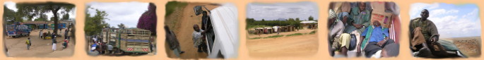 Die Strecke nach Kalokol ist bedeutend besser als die Strecke von Kitale nach Lodwar. Sie beträgt ca. 65 km und ist wenig befahren. Das Matatu beförderte nicht nur Personen innerhalb des Fahrzeugs, sondern auch auf dem Dach. Unterwegs gab es kleine Ansiedlungen zu sehen. |