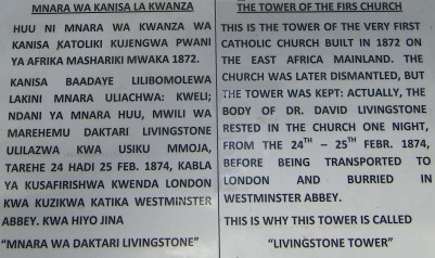 Im Jahr 1868 überließen die Muslime von Bagamoyo den "Vätern des Heiligen Geistes" Land für die Errichtung einer Mission, der ersten katholischen Missionsstation überhaupt in Ostafrika. Die einheimische Zaramo-Bevölkerung leistete verbitterten Widerstand. Dieser wurde von Sultan Majid bin Said und später vom Sultan Bargash niedergeschlagen. Ursprünglich diente die Mission als Zuflucht für Kinder, die der Sklaverei entkommen waren; es entstanden jedoch bald eine Kirche, eine Schule, Werkstätten und landwirtschaftliche Einrichtungen. Bagamoyo war Ausgangspunkt für Expeditionen europäischer Forscher. Zu ihnen gehörten zum Beispiel David Livingstone, Richard Francis Burton, John Hanning Speke, Henry Morton Stanley, Franz Stuhlmann, James Augustus Grant und Friedrich Bohndorff. Von Bagamoyo aus machten sie sich auf die Suche nach den Quellen des Nils und erforschten Afrikas Binnenseen. In den Jahren 1888 bis 1891 war Bagamoyo Hauptstadt von Deutsch-Ostafrika, ehe der Sitz der Zentralverwaltung aufgrund des tieferen Hafens nach Dar es Salaam verlegt wurde. Bagamoyo blieb Sitz einer Bezirksverwaltung. Die deutsche Zeit Bagamoyos endete frühzeitig, 1916 nach dem Einmarsch britischer Truppen im Zuge des Ersten Weltkrieges. |